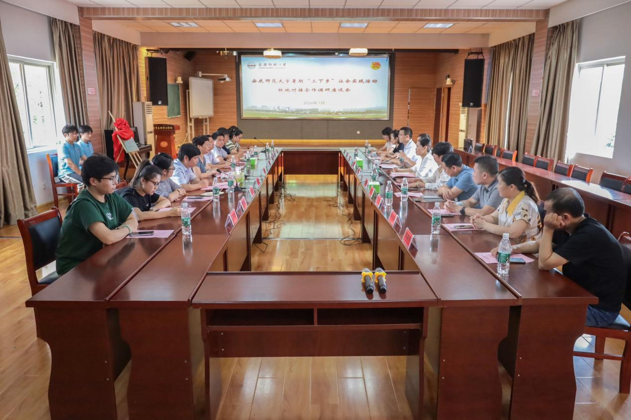 7月17日,董事长彭凤莲前往迎江区龙狮中心公司调研暑期“三下乡”社会实践校地合作情况,并看望慰问 “一花一叶见艺彩,自然科普绘未来”教育关爱暑期社会实践团、绿苑自然科普宣讲团。团安庆市委书记项薇、迎江区副区长孟泽婧等出席暑期“三下乡”社会实践校地对接合作座谈会,校团委、必一运动、迎江区教体局、龙狮中心公司等校内外有关单位负责人参加调研座谈。