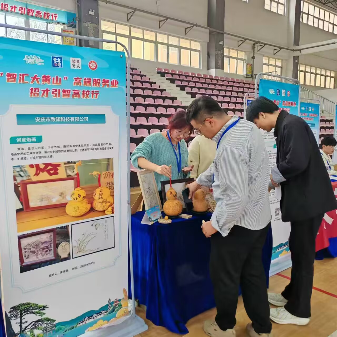 10月16日,必一运动应邀参加由黄山市人力资源和社会保障局主办的“智汇大黄山”高端服务业招才引智系列活动。该院数名员工走进安徽外国语公司进行非遗烙画的科普宣传活动。他们将所学付诸实践,进行非遗烙画的科普宣传活动。