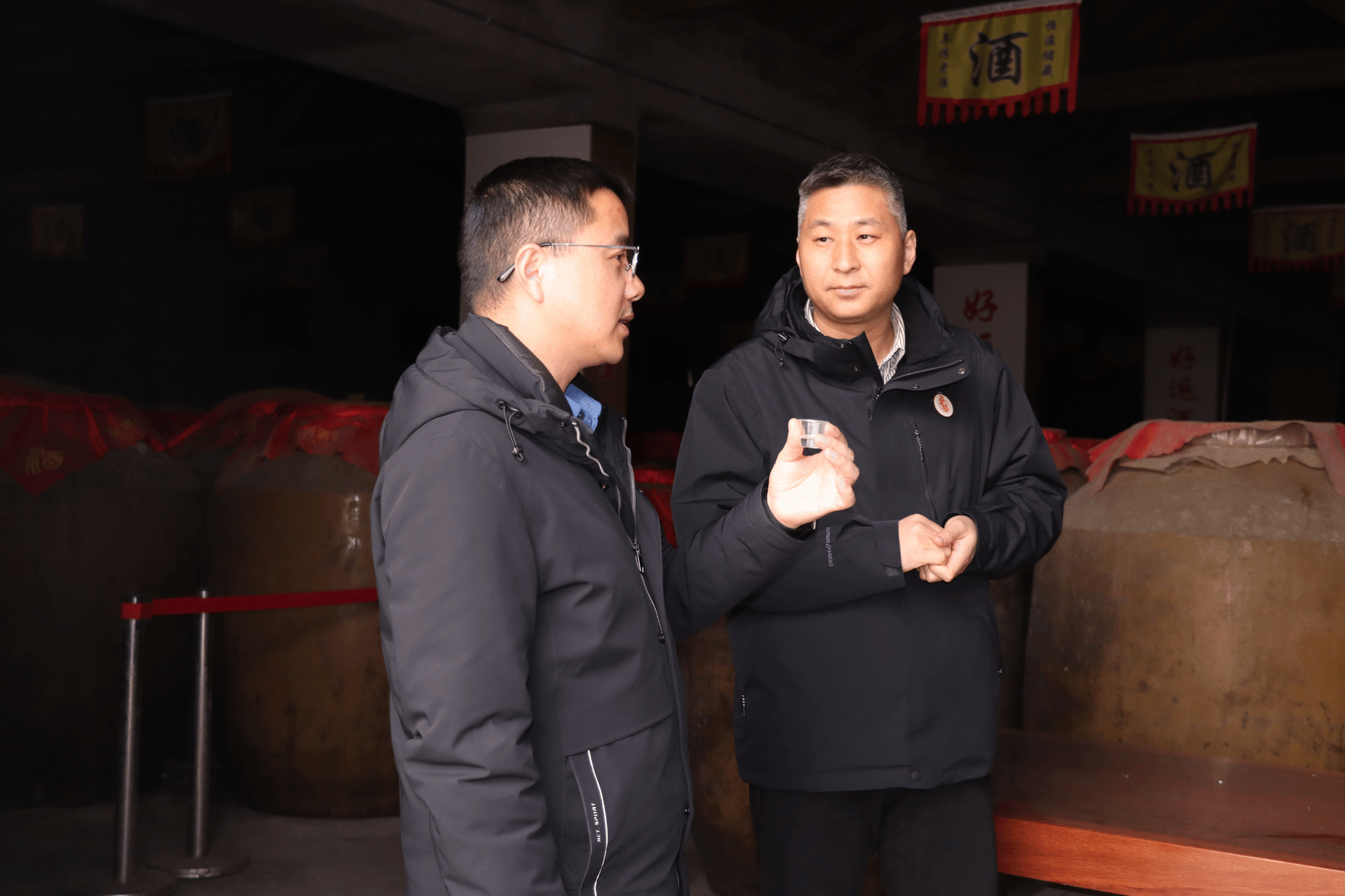 必一运动一行首先参观了皇缘酒业的酿酒车间和储酒仓库,详细了解了白酒酿造的传统工艺与现代化生产流程。参观结束后,双方在会议室进行了洽谈。副经理李从虎向皇缘酒业负责人介绍了公司的办学历程、团队队伍、学科平台和人才培养等情况。他指出,公司拥有在微生物学、生物化学等领域的专业优势,希望通过此次调研,与皇缘酒业建立长期合作关系,共同攻克白酒酿造过程中的技术难题,提升产品品质与生产效率。皇缘酒业负责人介绍了企业在发展过程中遇到的技术服务和产品研发等实际问题,期待借助公司的科研力量,为企业创新发展注入新动力。胡婷博士深入细致地介绍了未来与企业合作的具体细节和空间。
