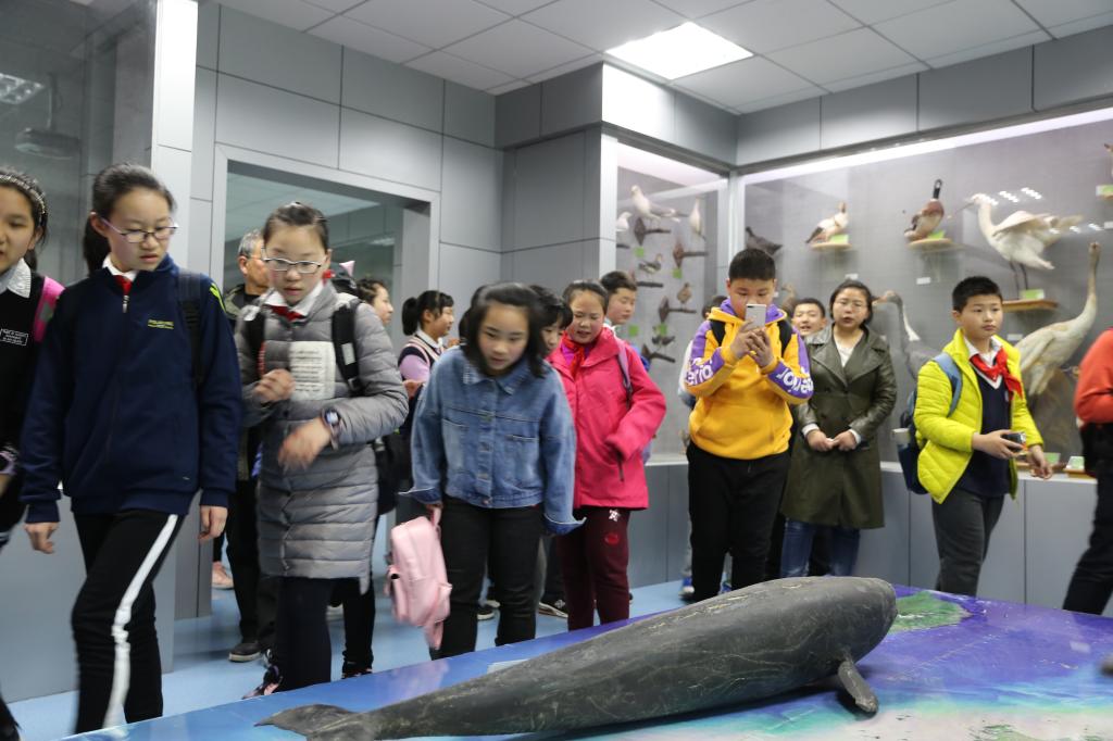 动物标本馆内,栩栩如生的动物标本,让他们眼前一亮,纷纷不由的惊叹:好逼真啊!他们既兴奋又好奇,不断提出各种疑问,解说员同学耐心细致地回答问题,并为他们普及生物科学知识,介绍动植物的结构特点、生物习性和演化过程等。