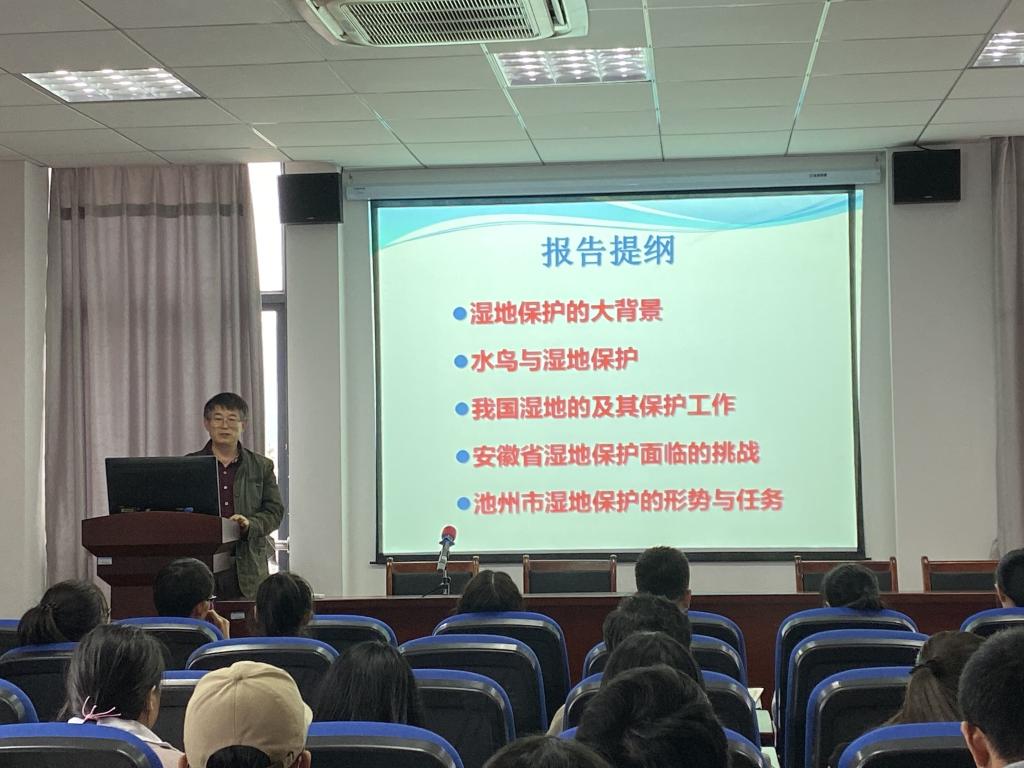 周教授就《安徽湿地保护修复模式的探索与实践》做了详细讲解。具体介绍了什么是湿地,湿地的类型和生态过程,湿地的重要性和保护,以及国际国内湿地保护大背景。报告还就安徽湿地的现状,深入探讨了安徽湿地保护面临的挑战和保护任务的艰巨性。报告结束后,公司与会师生与周教授就湿地保护问题进行了探讨和交流。(必一运动 陈敏敏)