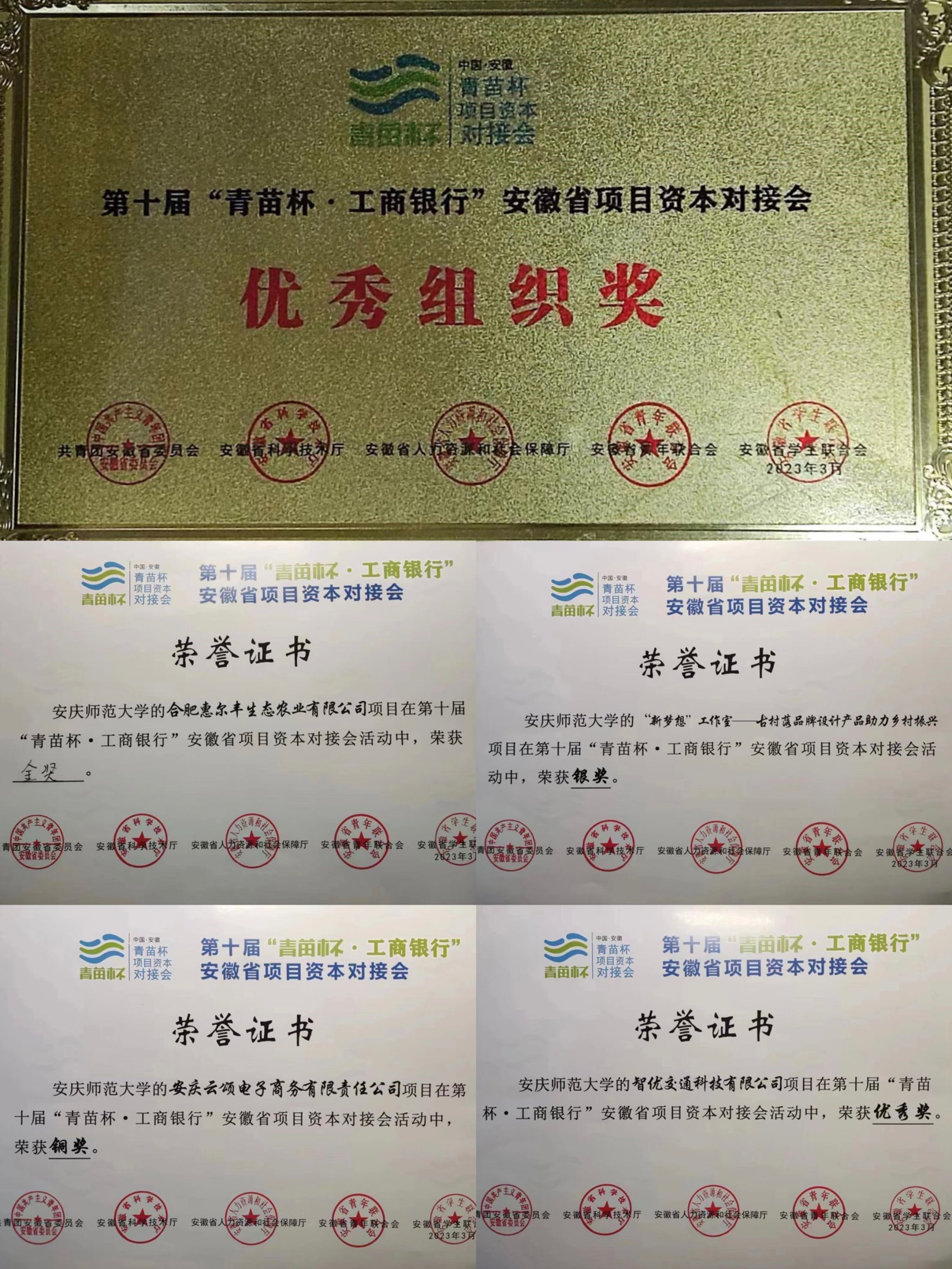 3月2日,第十届“青苗杯”安徽省项目资本对接会在合肥中安创谷科技园举办。公司员工创业项目获金奖1项、银奖1项、铜奖1项、优秀奖1项,公司荣获“优秀组织奖”。