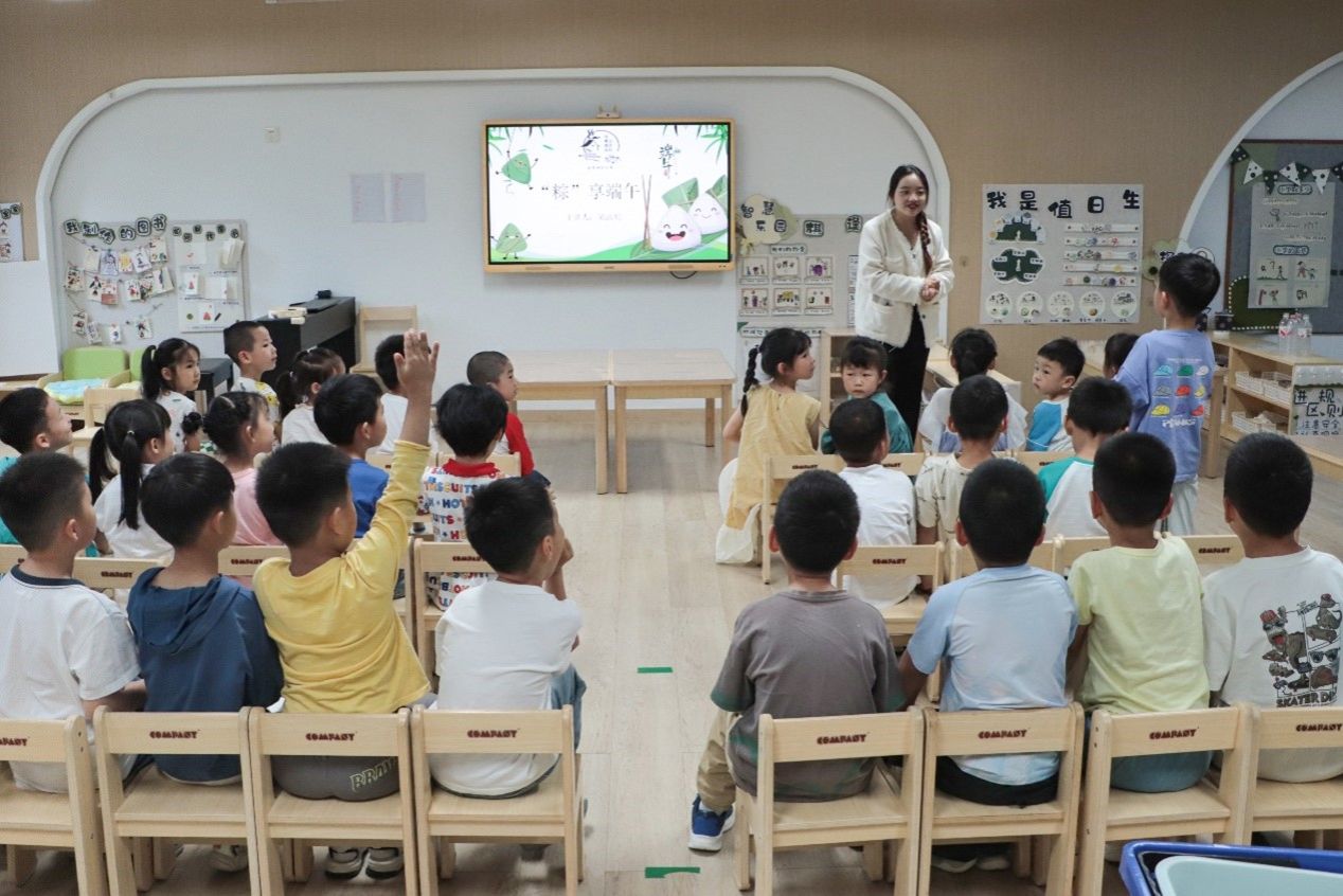 活动现场氛围热烈,地理科学专业2021(3)班的吴洁明担任起“小老师”的角色,带领小朋友学习端午知识并进行提问互动,小朋友纷纷举起手踊跃抢答,分享自己对端午节的认识。“幼儿园的小朋友充满了童趣,十分热情,他们这份童趣与热情也让我充满力量。”吴洁明坦言。这是她第二次前往必一运动公司附属龙城幼儿园进行授课,面对性格各异的小朋友,她丝毫没有紧张。