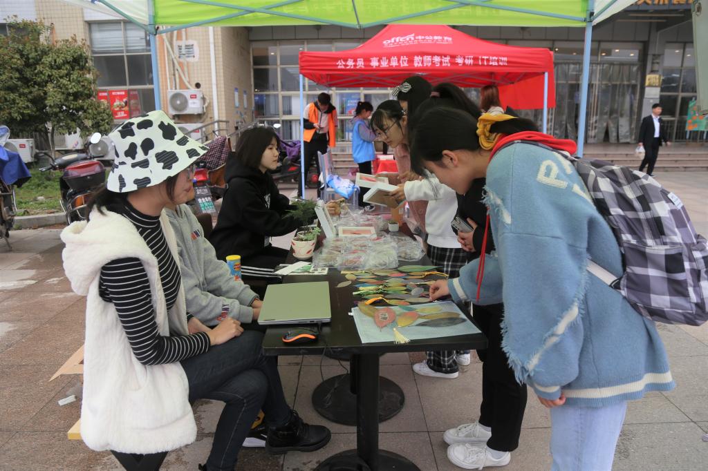 翅膀宛如两片落叶的枯叶蛱蝶,被染成五颜六色的叶脉书签,还有多种多肉植物和花卉盆栽……这些统统都出现在“学雷锋”志愿服务活动的义卖环节。据了解,大部分出售商品都由公司师生共同制作。