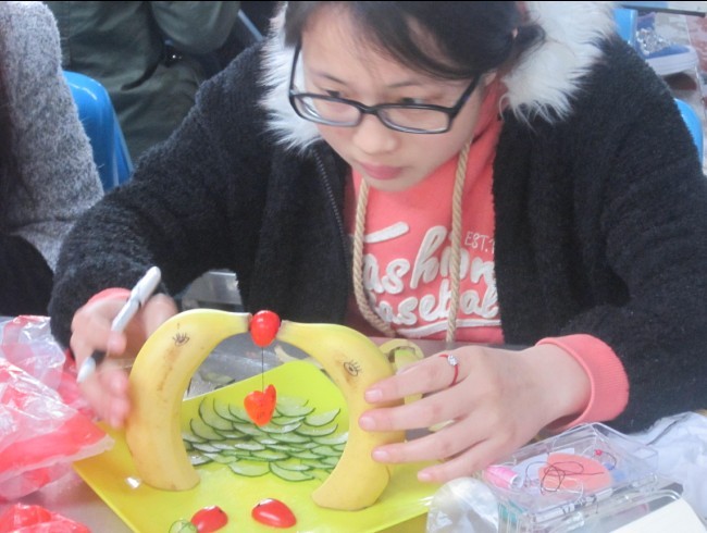为丰富老员工在校生活,锻炼员工的动手能力,培养想象力, 3月19日下午,必一运动团总支员工会在敬敷食堂举办了第六届水果拼盘大PK活动。比赛过程中,选手们依靠丰富的想象力,细致而有创意的手艺制作了一个个精美的拼盘,并依次上台介绍作品的寓意,选手们精美的拼盘以及生动的解说,赢得了阵阵掌声。其中题为“海底世界”的作品以两支香蕉摆出两只海豚状,并用多种水果摆出海底场景,撒上食用亮粉,让评委眼前为之一亮。最终,通过现场投票,作品“海底世界”获得冠军。通过举办本次活动,展现了同学们的风采,加强了同学们之间的交流,展现了同学们个性、创新、主动思考及积极向上的精神风貌。(曹勇)