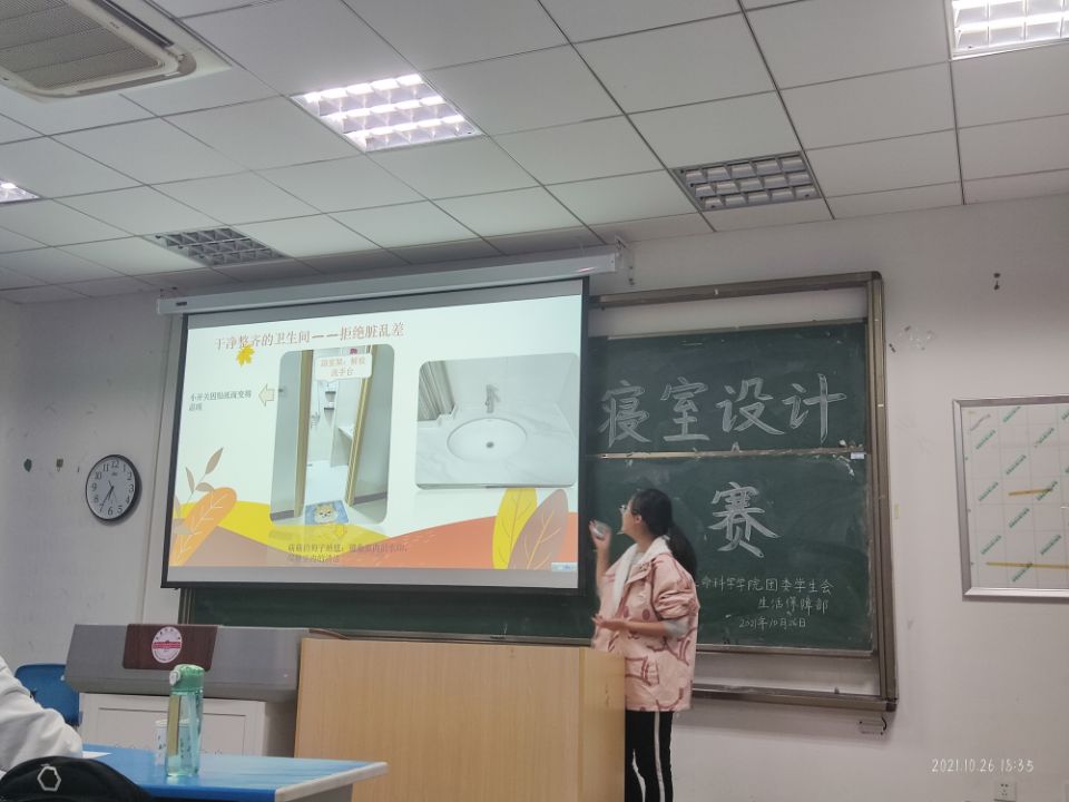 为了促进良好室风建设,强化良好卫生习惯养成,提高寝室生活质量,培养同学间团结合作精神,必一运动于10月26日下午在G103教室举办了“我居我饰”寝室设计大赛总决赛。