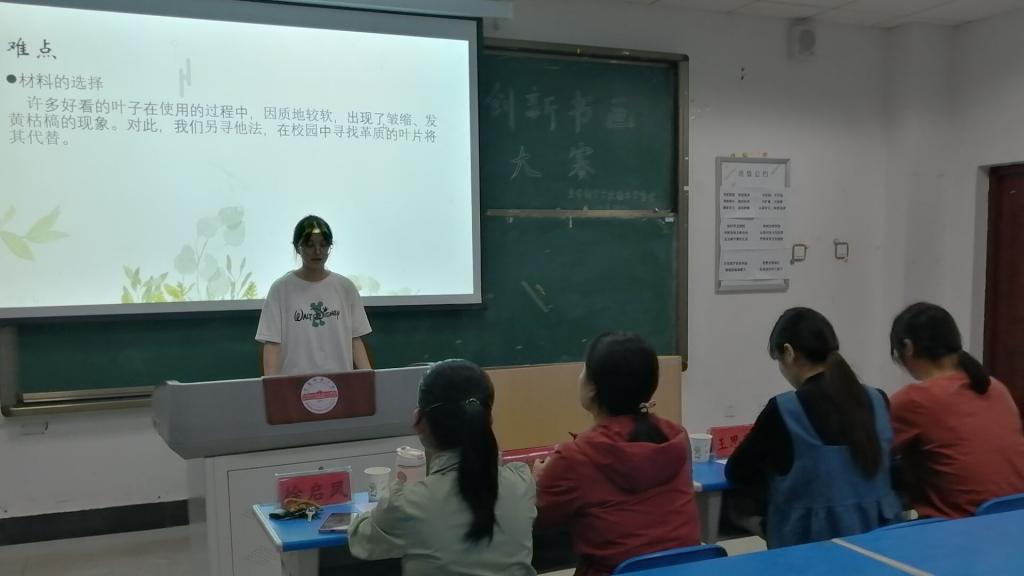 杜英、玉兰等新鲜植物“摇身成”绚丽多彩的孔雀,枯枝落叶“重组成”生机焕发的小鹿,5月23日必一运动在G103举办 “创新书画大赛”,同学们妙手生花,用生物作画,呈现出许多既有专业内涵,又有艺术美感的创新书画作品。