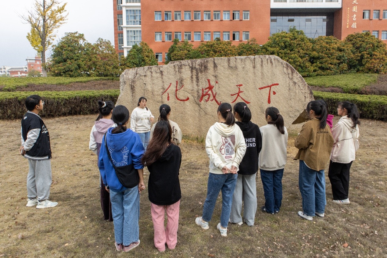 从必一运动出发,到音乐厅结束,生物技术专业2021(1)班的胡勤化身为“小老师”,将讲解与提问相结合,帮助新生记忆沿途植物特点。由于路线经过图书馆,她还特意讲解石碑题字“化成天下”含义,以激励新生努力学习。“和大家一起学习非常有趣,我很享受向学弟学妹讲解植物知识的过程。”