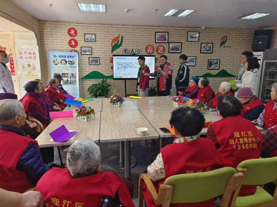 “红日升在东方,其大道满霞光……”还没等主持人提问,“是万疆”,老人们抢答了起来。此后,肩颈大作战,纸片传球,背后传字火热开展了起来,“我们通过开展各种游戏让老人们更好地融入到了轻松快乐的氛围当中”,2023级园林的华吕波表示这种将游戏与运动结合的方式不仅使活动更加丰富有趣,同时让老人们得到了适当的锻炼。