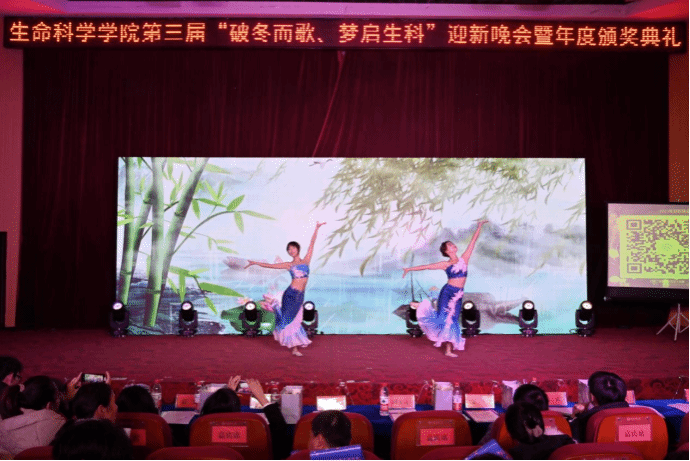 舞蹈队带来的开场舞《bangbang》以火热的情感表演带动了现场的首次气氛浪潮;由2023级食品工程一班的江如炜同学带来的独唱《瞬》是那样动人心弦,台下缓缓舞动的荧光棒是大家对他带着高度赞赏的回应;2023级生科二班的同学们则给大家表演了朗诵《攀登》,恢弘的气势之中,是他们敢于攀登高峰的顽强和不屈。舞蹈《烟雨行舟》古典优雅......节目间歇安排互动游戏环节,观众们积极参与,现场氛围十分热烈。