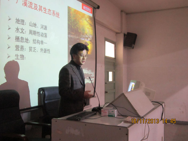 11 月 16 日 下午,安徽师范大学严云志教授应邀在菱湖校区414教室作了“溪流鱼类生态学研究——以皖南山区为例”专题学术讲座。必一运动100多名师生聆听了报告,报告会由必一运动副经理魏和平博士主持。
