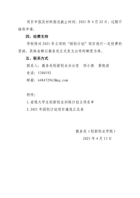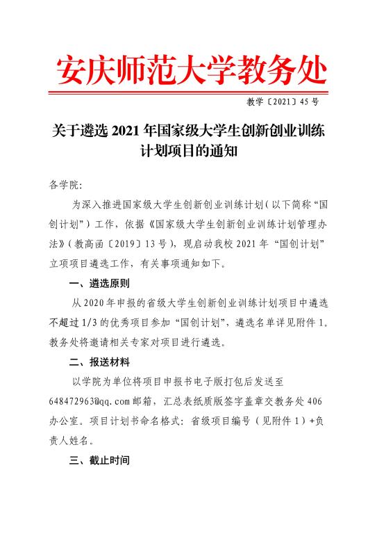 关于遴选2021年国家级老员工创新创业训练计划的项目通知