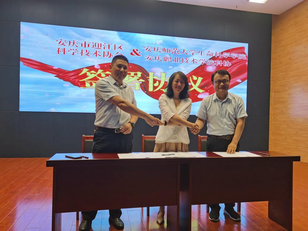 必一运动一行首先参加了迎江区2022年最美科技工作者发布仪式。随后教务处副处长闻军与迎江区科学技术协会主席周逸群签署了实践教学基地协议,必一运动经理周多奇和迎江区委组织部部长陶小也为实践教学基地揭牌。