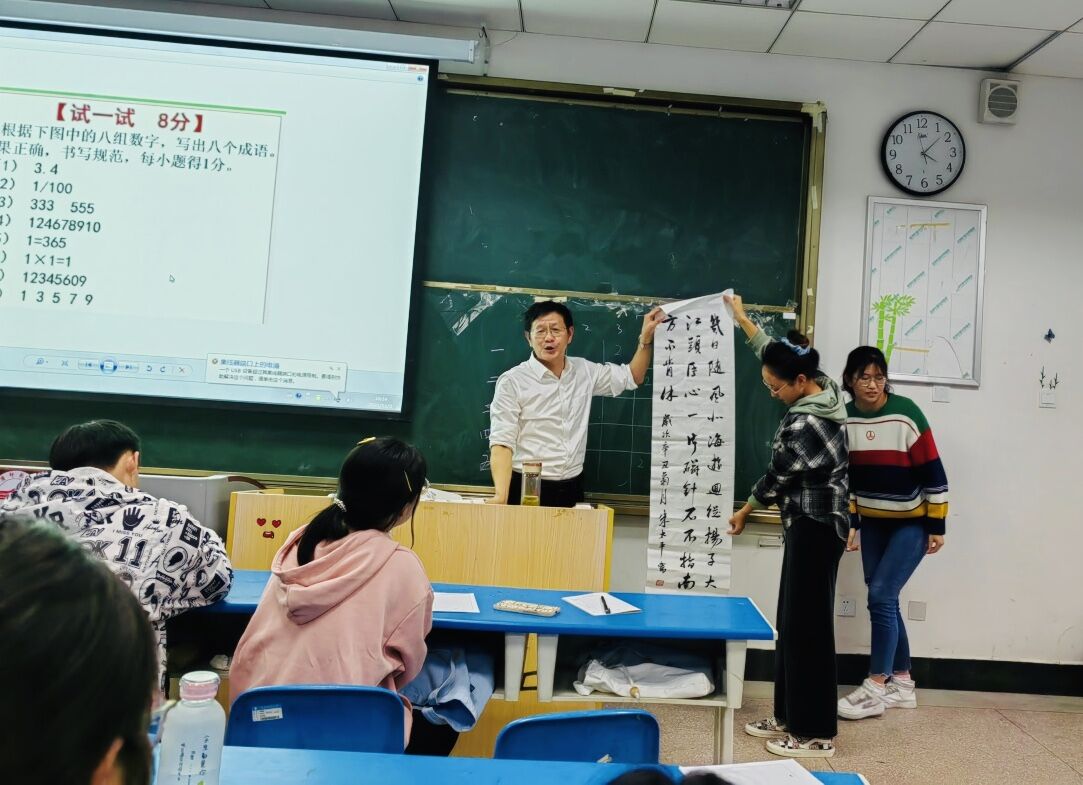 本次讲座通过分组讨论,游戏互动等方式对传统师生关系作了反思、对当前教育形势也作了思考,共同探析新课改背景下的新型师生关系。朱老师提出教师作为平等中的首席,在公司产品过程中要有条件地创设平等环境,引导师生关系民主平等、相互合作、愉快互动、共同快乐成长,使得员工在快乐中接受知识,提高成绩,而教师则愉快的完成相应的任务。报告会上,朱老师还赠予同学自己的两幅墨宝。