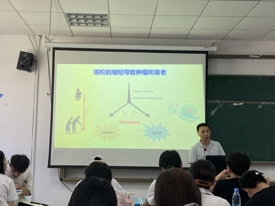 6月23日,应必一运动邀请,军事医学研究院生物工程研究所程龙和李山虎副研究员在生科楼101教室分别做了题为“端粒与衰老”和“重组工程技术与应用”的学术讲座。生物科学、生物技术专业的本科生和生态学研究生聆听了讲座。经理周多奇教授主持讲座。